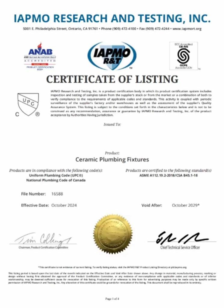 Yes. We perform strict quality checks at every stage—raw materials, molding, firing, flushing/functional tests, final appearance check, and packaging—to ensure each shipment meets required standards.